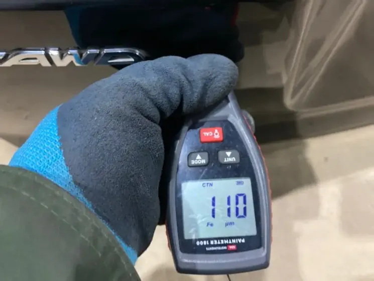 - Замер толщины ЛКП: В пяти точках (центр, углы) толщинометром. Для оригинальных деталей Subaru характерен слой в 100-130 микрон.