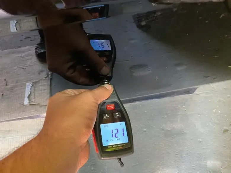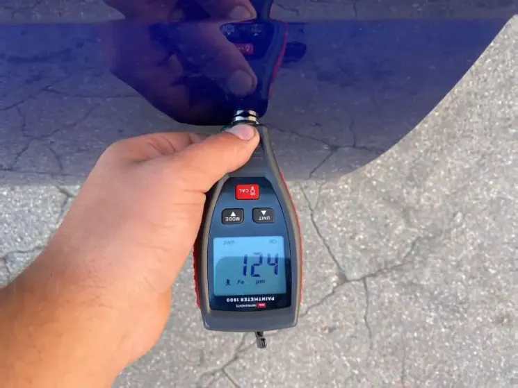 - ЛКП: Замер толщинометром в пяти точках. Для оригинальной краски Toyota допустимый диапазон — 110-130 микрон.