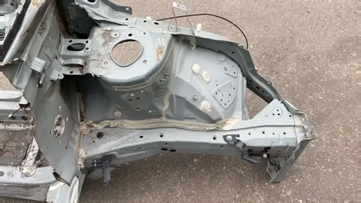 Типичная деталь, которую мы предлагаем, — это оригинальный лонжерон (OEM 52111-0R010 или аналог), снятый с автомобиля, не подвергавшегося серьезным фронтальным ударам. На поверхности могут быть мелкие царапины от дорожного песка, но геометрия и целостность металла — идеальны. Именно на этот стандарт мы даем гарантию.